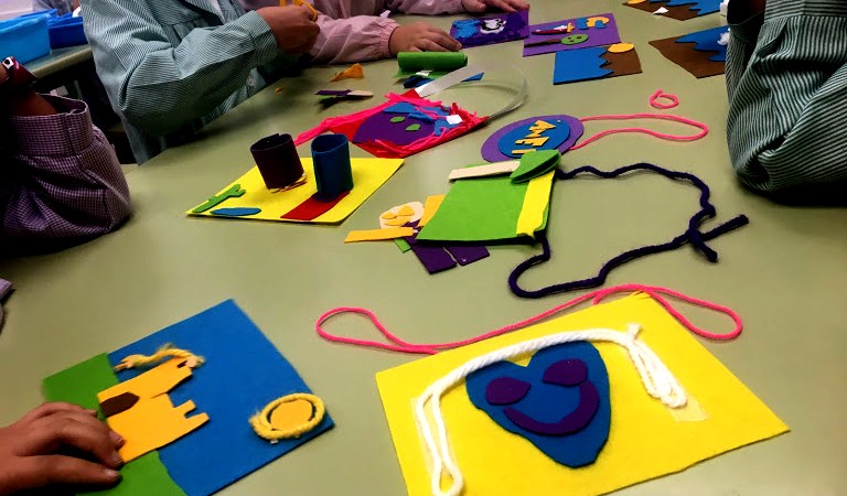 Damos diferentes sesiones a la semana en el Colegio Nuestra Señora del Huerto en Pamplona adaptadas a niñ@s desde 1º a 6º de primaria. En estas clases desarrollan su expresividad artística explorando con muy diferentes materiales y técnicas del mundo del arte y las manualidades.