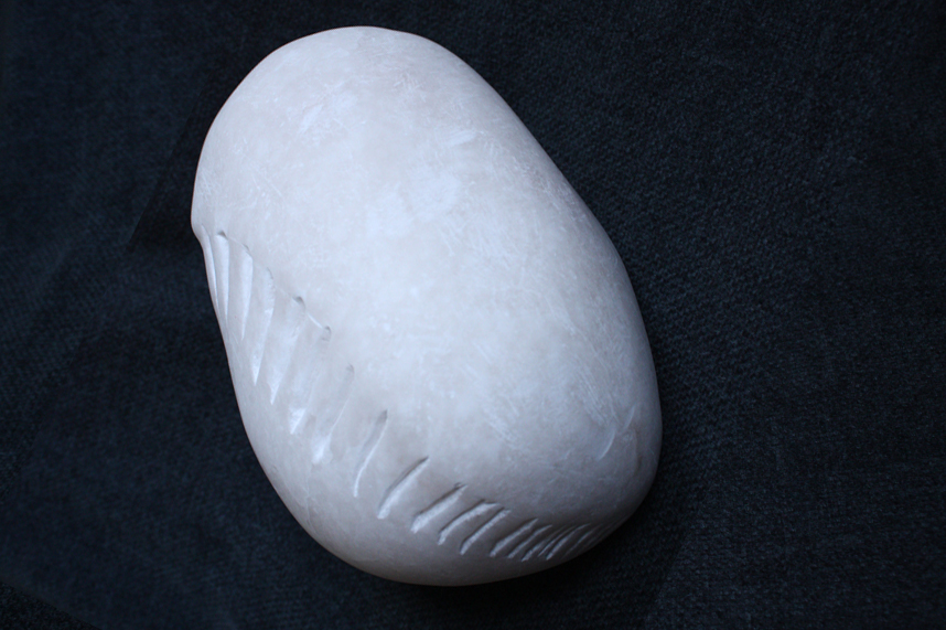 Con esta escultura de alabastro realizada en 2013 participé en la exposición colectiva “Jóvenes Artistas 2014” del Ayuntamiento de Pamplona en la Sala de Armas de la Ciudadela. La escultura mide 12,5 x 20 x 14,5 cm y actualmente reside en el salón de un hogar.